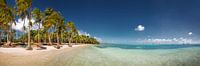 Dromerig Caraïbisch strand op het eiland Guadeloupe met grote vrijstaande kokospalmen en turquoise zee.