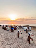 Strandstoelen op het strand van Cuxhaven-Duhnen in de avond.