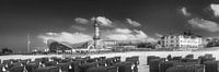 Strandstoelen op het strand van Warnemünde in Mecklenburg-Vorpommern in Noord-Duitsland aan de Oostzee.