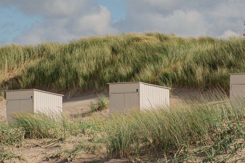 Deze strandcabines staan op het strand bij Nieuwvliet (West Zeeuwsvlaanderen) en zijn te huur.