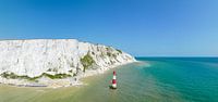 De vuurtoren van Beachy Head aan de zuidkust van Engeland, met daarachter de hoogste krijtrots van Groot-Brittannië (162 m).