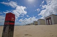 Strandhuisjes bij paal 33 op Texel. Een bekende plek voor veel mensen, want dit is vlak bij de vuurtoren, de reddingboot en de veerdienst naar Vlieland. De steiger naar de veerboot naar Vlieland, het Waddenveer, is nog net te zien