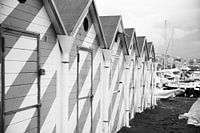 Strandhuisjes in de vissershaven van Napels. Op de achtergrond zijn de woningen aan de haven achter de vissersboten en plezierjachten te zien. Deze foto maakt deel uit van mijn serie "Italiaanse straatjes".