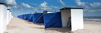 Strandhuisjes op het strand van Katwijk zijn kenemerken voor het nederlandse strandleven. Ruimte, blauwe lucht met wolken en watersport horen daar allemaal bij.