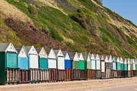 Kleurrijke strandhutten op het strand van Bournemouth in Dorset, Engeland, Groot-Brittannië