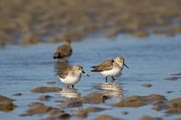 Koop dit vogel kunstwerk Strandlopers op het strand van Marcel Alsemgeest op canvas, aluminium dibond, (ingelijste) fotoprint, behang en ArtFrame, op maat geprint in Fine-Art kwaliteit.