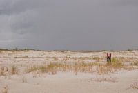 Strandpaal op het strand van Nationaal Park Schiermonnikoog.
