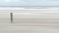 Door alleen de strandpaal in de compositie te zetten, krijg je een rustgevend minimalistisch beeld. De foto is genomen om het Noordzee strand op Terschellen