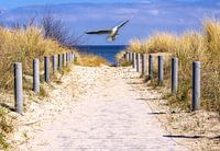 Strandpad aan de Oostzee op Usedom met zeemeeuw