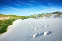 Toegang tot het strand door de duinen met voetafdrukken en fijne zandgolven