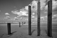 Een serie strandpalen markeren het einde van het naaktstrand bij Langevelderslag.
