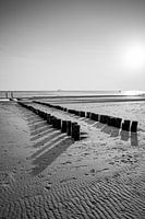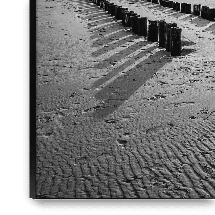 Koop dit abstracte kunstwerk Strandpalen in Zwart-wit Grafisch Spel van Licht en Structuur van Femke Ketelaar op canvas, aluminium dibond, (ingelijste) fotoprint, behang en ArtFrame, op maat geprint in Fine-Art kwaliteit.