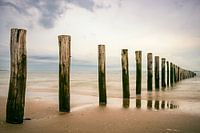 Strandpalen in zee op een bewolkte dag op het Noordzeestrand in Zuid-Holland.