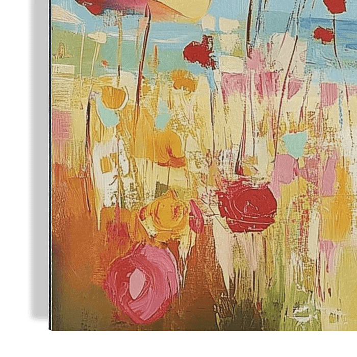 In de afbeelding dwarrelen warme kleuren over het doek als strofen van een zomers vers. De penseelstreken zijn losjes en…
