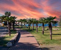 Strandpromenade met palmbomen aan de Adriatische Zee in Kroatië