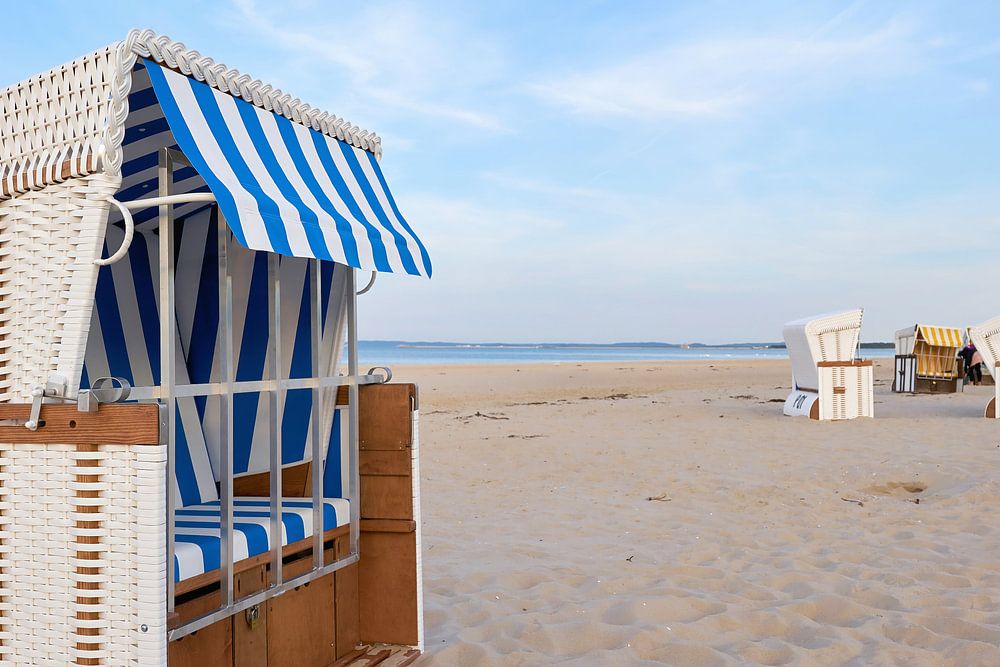 Strandstoelen op het strand van de Duitse Oostzeekust bij Ahlbeck