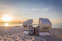 Strandstoelidylle bij zonsondergang in Zingst, Mecklenburg-Vorpommern, Duitsland