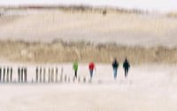 Wandeling op het strand en door de duinen bij de Noordzee aan de Zeeuws-Vlaamse kust bij Cadzand-Bad. Schilderij achtige foto in kleur.