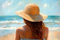 Koop dit schilderij Strandzicht met hoed van Poster Art Shop als reproductie geprint op canvas, aluminium dibond, (ingelijste) fotoprint, behang en ArtFrame. Voor jou op maat geprint in Fine-Art kwaliteit.