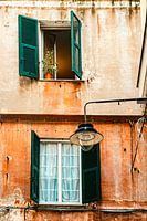 Genua is een stad in Noordwest-Italië, ten zuidwesten van Milaan, aan de Ligurische Zee. De oude stad van Genua heeft vele smalle straatjes om door heen te zwerven. Prachtige verweerde kleuren en details. Zoals te zien is op deze foto ramen met luiken en terracotta kleurige verweerde muren.
