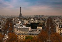Een fijn en zacht beeld van de straten van de Parijs met natuurlijk de Eiffeltoren erop. Op de achtergrond is een mooie zachte lucht en je ziet in de straten nog de mooie gekleurde bomen van de herfst. De foto heb ik gemaakt vanaf de Arc de Triomphe