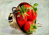 Strawberries in a silver bowl with texture