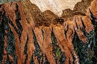 Een rij figuren in de schors van een gevelde boom...of zien we hier een groepje zonaanbidders die gaan voor streeploos bruin op het strand ?