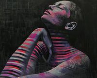 Details: portret, vrouw, modern, kleurrijk, strepen, abstract, gezicht, kunst, canvas