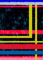 Geometrische vormen, abstracte texturen, heldere neonkleuren.
