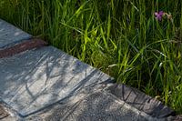 Dit grafische en textuurrijke werk legt de visuele botsing vast tussen de strakke, architecturale vormen van grijs beton en de organische, levendige chaos van hoog, groen gras. De compositie wordt gedomineerd door de scherpe diagonaal van het beton, wat een gevoel van vastberadenheid en orde geeft. Dit staat in fel contrast met het…