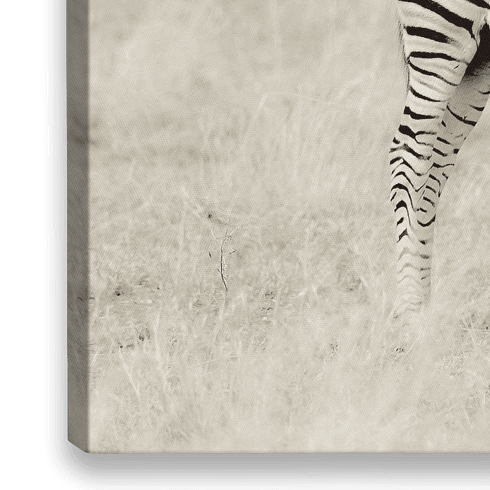 Prachtige zwart-wit foto van een moeder zebra met zogend veulen. Deze foto werd gemaakt tijdens een safari trip in zuidelijk Afrika. Deze foto zal op iedere wand prachtig staan.
