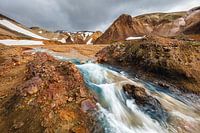 Landmannalaugar is een dal in het binnenland van IJsland. Op de foto is een stromend beekje te zien dat dwars door het dal loopt.