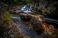 Koop "Stromend water langs rotsen in Schotland. " op canvas, aluminium, Xpozer, (ingelijste) fotoprint of behang, op maat geprint in Fine-Art kwaliteit.