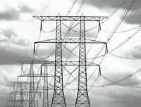 Elektriciteitsmasten met stroomlijnen die afsteken tegen een bewolkte lucht.