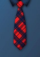 Een geïllustreerde poster van een rood geruite stropdas tegen een donkerblauwe achtergrond.