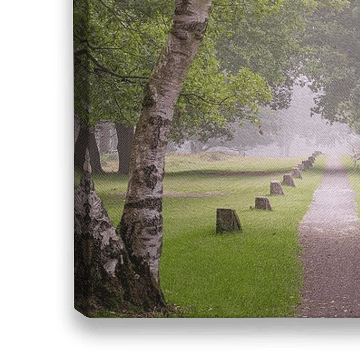 Een prachtige boom hangend ook over het fietspad op een mistige ochtend