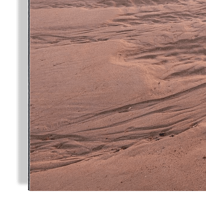 Elke keer dat je op het strand komt, is het anders. De structuren die door de wegtrekkende golven worden achtergelaten zijn een feest voor het oog. Je ziet hierin duidelijk de kracht van het water terug. Die dynamiek staat recht tegenover de rust van de pastelkleuren in de lucht tijdens zonsondergang.