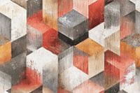 Een spel van blokken en vlakken in warme tinten van rood, roest, beige en zacht grijs wekt de indruk van diepte en gelaagdheid. De verschuivende vormen lijken te zweven en zorgen voor een dynamiek die tegelijk speels en evenwichtig aanvoelt. Dit werk brengt een subtiele energie in elke ruimte, zonder schreeuwerig te worden, en nodigt uit om telkens nieuwe lijnen en patronen te ontdekken.