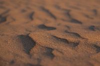 Zacht licht van de zonsondergang op het zand van Ameland. Je ziet prachtige golven in het zand die door de natuur / wind zijn gevormd. Nog door geen mens aangeraakt.