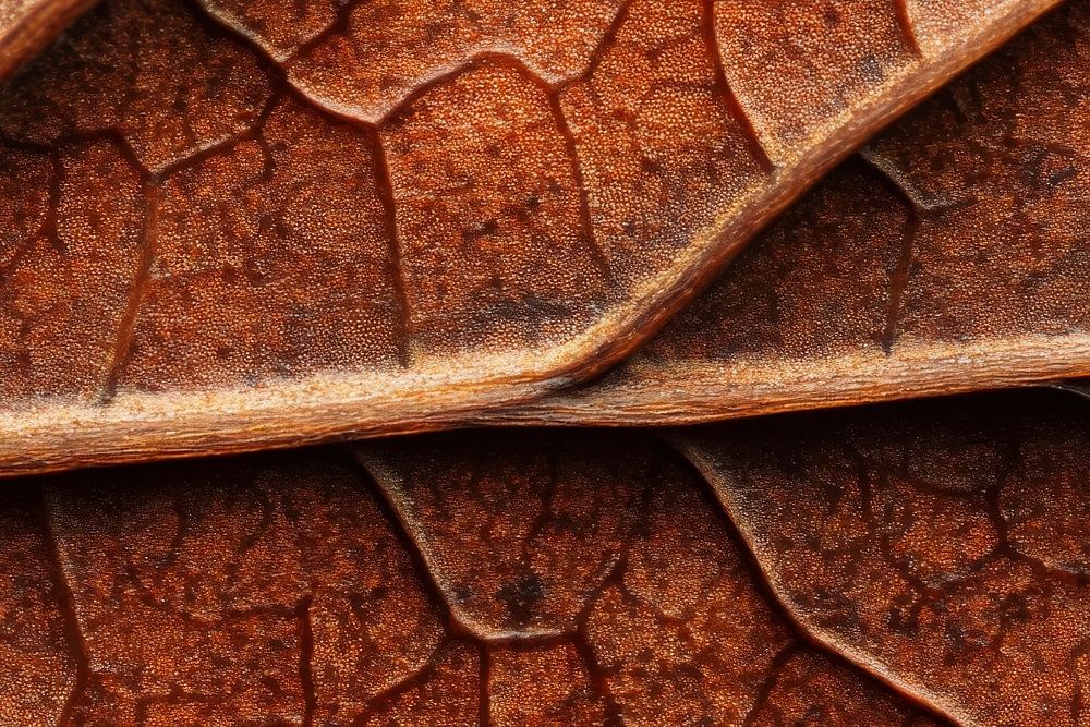 Er ontvouwt zich een harmonieus samenspel van warme bruine tinten, terwijl de bladstructuren in sierlijke rondingen lopen. Fijne scheurtjes lopen door het oppervlak als kleine verhalen van de natuur verteld door de tijd. Deze fascinerende textuur en de eenvoudige elegantie van de bladeren roepen nostalgische herinneringen op aan herfstwandelingen in het gouden licht.