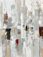 In een harmonieuze, abstracte compositie toont dit schilderij verschillende geometrische vormen en tinten in wit, beige en grijstinten. Kleine accenten in warme kleuren brengen het werk tot leven. De structuur doet denken aan de silhouetten en vlakken van een stedelijk landschap, waar verschillende elementen in balans zijn. Dit…