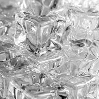 De afbeelding toont een close-up van verschillende heldere ijsblokjes die dicht bij elkaar liggen en op elkaar gestapeld zijn. De blokjes hebben scherpe randen en gladde oppervlakken die het licht in verschillende richtingen weerkaatsen. Het algehele effect is helder, duidelijk en gereduceerd - met een focus op structuur, geometrie en het spel van licht.