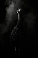 Een majestueuze vogel stijgt op uit een mysterieuze mist, zijn lichaam gehuld in diepzwarte tinten. Het contrast tussen licht en schaduw geeft het een fascinerende, bijna surrealistische uitstraling. Dit kunstwerk is ideaal voor een moderne woonkamer en brengt een vleugje exotisme en drama in elke kamer.