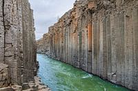 De Stuðlagil kloof is een indrukwekkende kloof van basalt rotswanden in IJsland. De kleur van het water steekt mooi af tegen de kleur van de rotsen