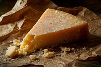 Een heerlijk stukje traditie rust op verfrommeld papier, de gouden glans getuigt van de rijke rijpheid. De kruimelige textuur nodigt je uit om ervan te genieten terwijl er fijne kruimels van het oppervlak vallen. Een feest voor de zintuigen dat het hart van alle kaasliefhebbers sneller doet kloppen, het belooft onvergetelijke…