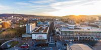 Stadscentrum van Stuttgart met de Königstraße bij zonsondergang.