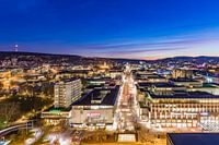 Stadsuitzicht op Stuttgart met Königstraße in de avond met Königstraße
