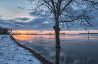 De twee vizierschuiven (boogvormige staalconstructies) van stuw- en sluizencomplex Amerongen staan omhoog in verband met het hoge water.
