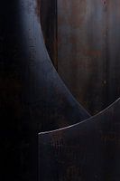 Deze metalen constructie heeft oneindig veel verschillende vormen. Dit is een van de vele varianten. De gebogen lijnen bieden een fraaie doorkijk naar het achterliggende gedeelte en vormt een natuurlijk decor. Door slechts 2 lijnen in de compositie te verwerken ontstaat er minimalistisch beeld. De lichtval op het blauwe metaal zorgt voor dieptewerking in de compositie. Door slechts een detail te fotograferen ontstaat er een fraai abstractie in koele blauw tinten met een tikkeltje bruintinten. Op de voorste gebogen lijn valt het licht mooi op de rand waardoor deze de aandacht trekt en de nodige spanning geeft. Deze foto zal het prachtig doen op een metalen print. En past perfect in een modern interieur.