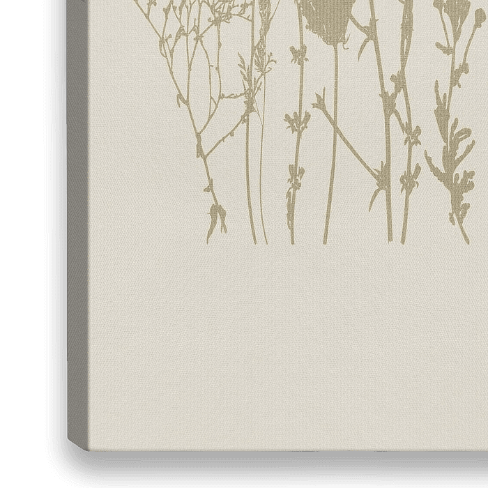 Deze verfijnde botanische serie vangt de lichtheid van zomerse weiden door middel van zacht getekende silhouetten van lavendel, witlof, koningin Anne's kant, kruiden en grassen. Elke plant is geïllustreerd in warme beige tinten op een zacht crèmekleurige achtergrond met papiertextuur, die doet denken aan de stille elegantie van geperste…